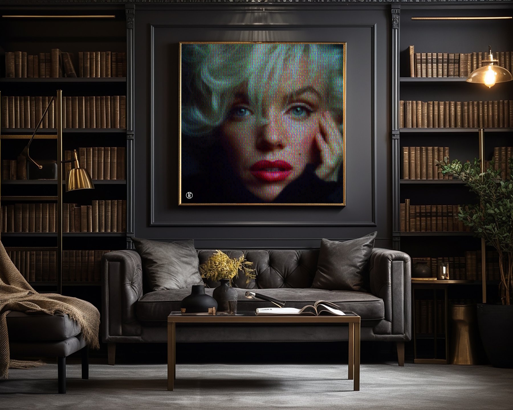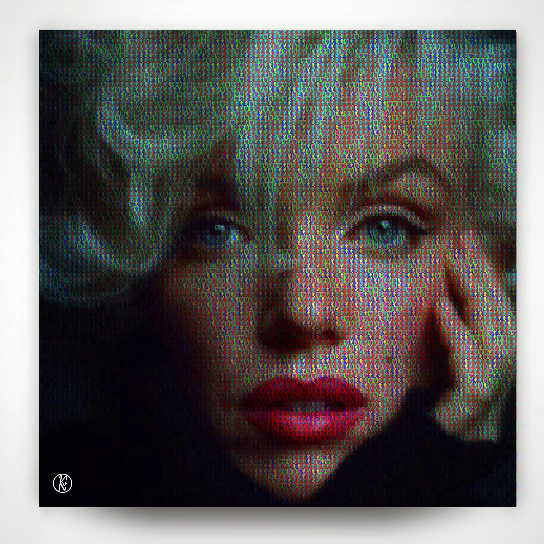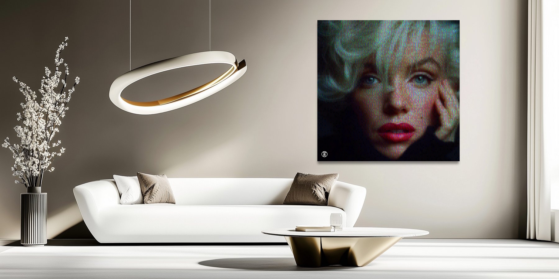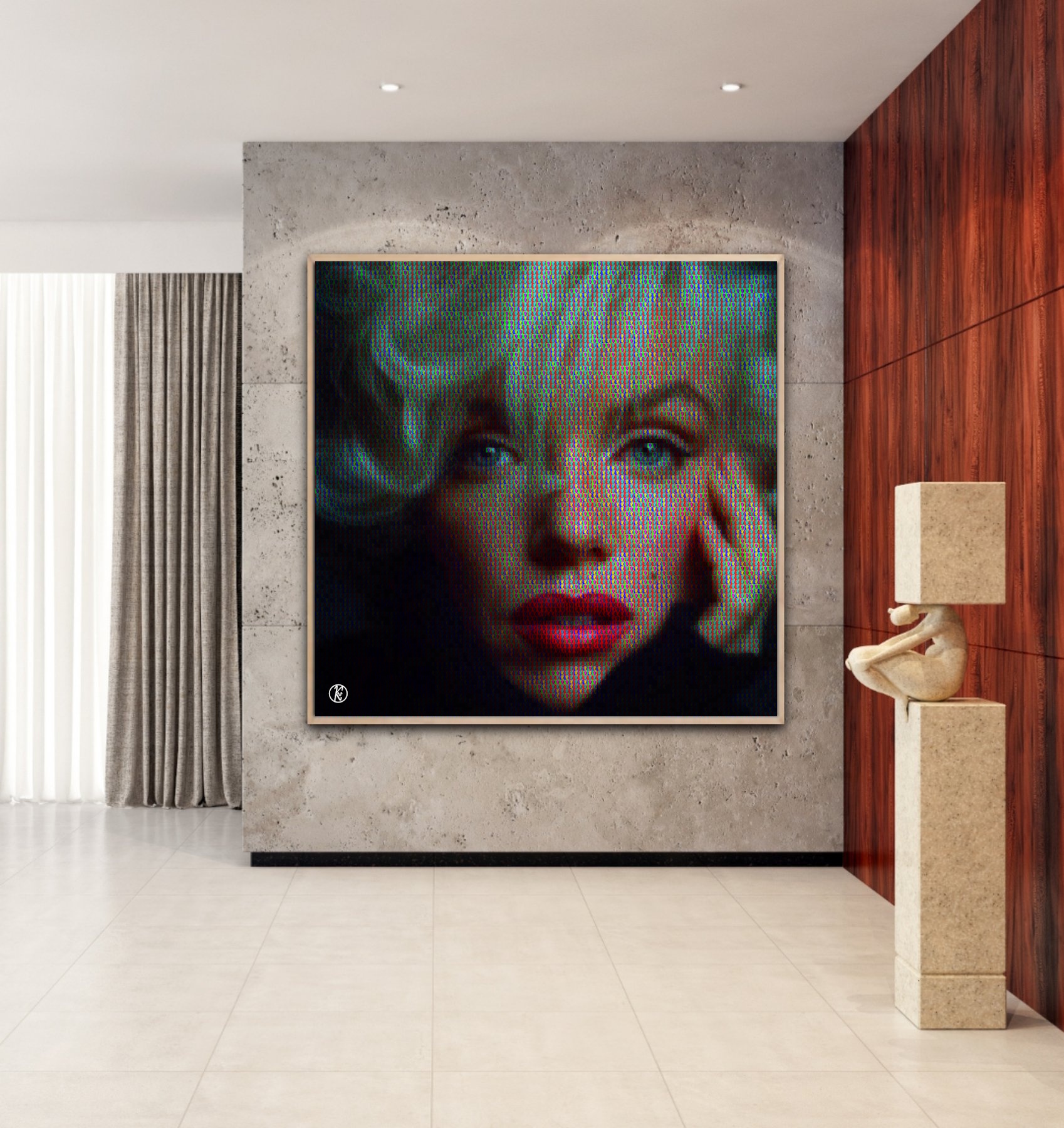 Stylish pop art portrait of Marilyn Monroe in Kurotory’s technicolor style.